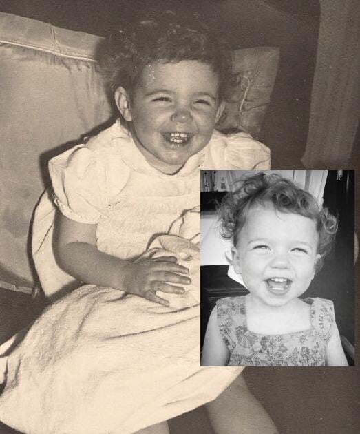 La prima immagine è di una donna e di sua figlia. La seconda immagine è di quella figlia infantile tutta cresciuta – con la sua bambina. Le due madri sembrano molto simili, specialmente intorno al naso e alla bocca.