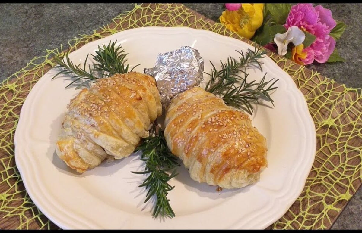Disponiamo tutte le cosce su una teglia ricoperta con carta forno, sbattiamo l’uovo e spennelliamolo sulla pasta sfoglia, infine decoriamo con i semi di sesamo. Ora via in forno, preriscaldato a 200° per 30/40 minuti fino a che la sfoglia non sarà ben dorata, serviamo tiepide.