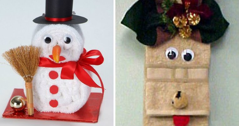 Ecco tantissimi modi per composizioni natalizie da regalare realizzate con semplici asciugamani.