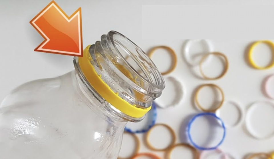 Gli anelli di plastica delle bottiglie possono essere riciclati per essere trasformati in borse per la spesa, portachiavi o in orecchini. A fine articolo troverete il video tutorial.