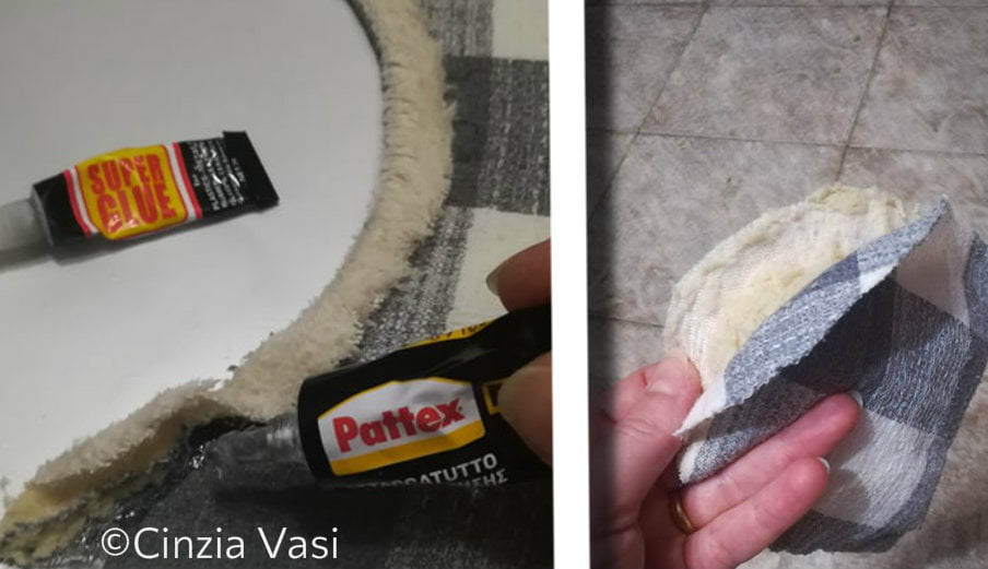 Con l’imbottitura potrete creare un simpatico bordino di peluche aiutandovi con della colla-mastice. Oppure se siete brave nel cucito potete tranquillamente non usare la colla ma procedere con delle cuciture manuali o con macchina da cucire.