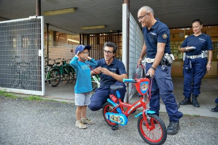La bici nuova era accompagnata da un biglietto: “Ciao, piccolo grande uomo, qualcuno giovedì pomeriggio ha provato a rovinarti la giornata, ma non c’è riuscito. Ti chiediamo scusa noi perché ti ha rubato, oltre alla bicicletta, il tuo bel sorriso nel giorno del tuo compleanno. Scusa per quella cattiveria che non sei riuscito a capire e scusa perché ha provato ad insegnarti che il mondo è dei furbi. Ma non è così. Il mondo è dei giusti e degli onesti come te. Ora hai un bolide nuovo, un bolide della polizia locale. Buon compleanno dai tuoi amici vigili”.