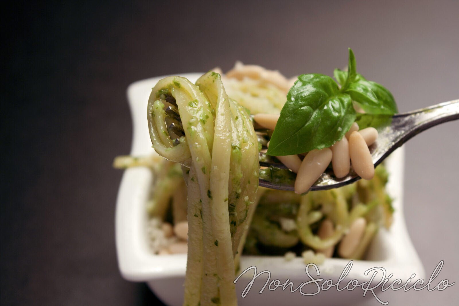 Ma siccome le ricette di cucina non sono scolpite sulla pietra, non c’è nulla di male a provarle con delle varianti. Diciamo che in Liguria la pasta d’ordinanza, col pesto, sono le trenette, mentre nel resto d’Italia possono anche essere le linguine.