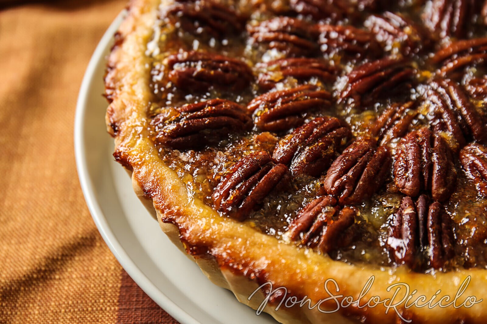 Questa pie, o torta che dir si voglia, è fatta con una base di pasta brisée su cui si stende una glassa fatta con sciroppo d’acero e noci pecan. Di solito in America la servono con l’accompagnamento di un po’ di gelato o di panna fresca.