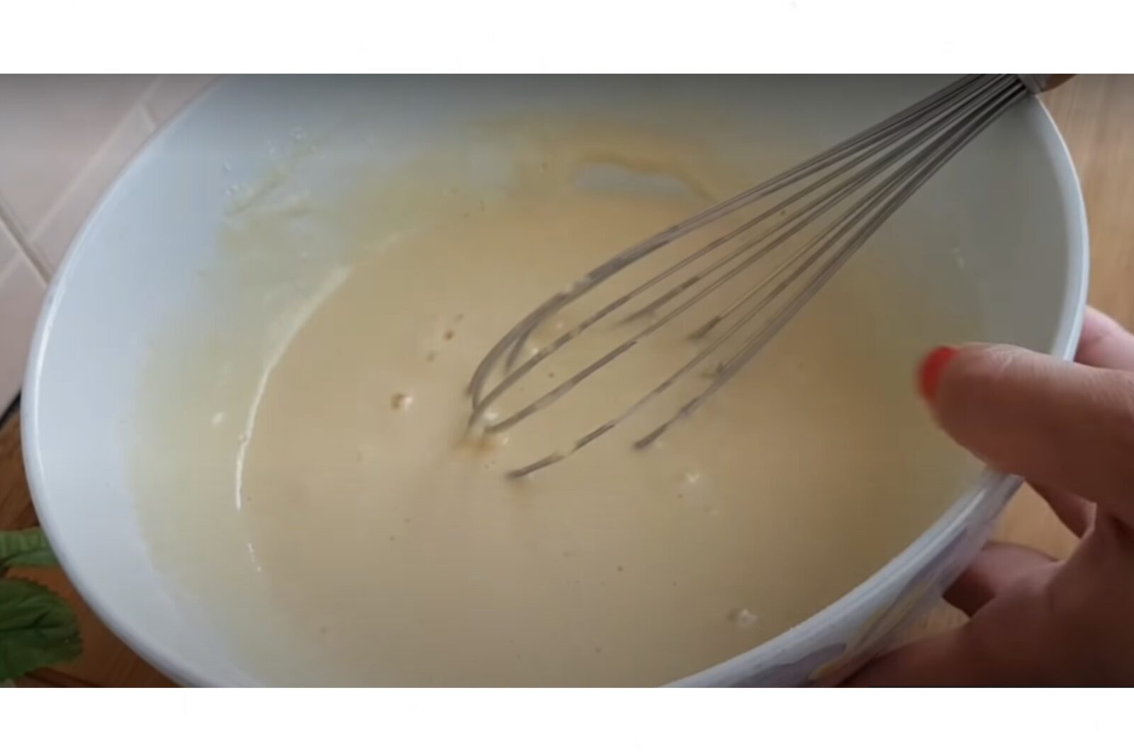 Inserire metà del latte con metà della farina e il lievito in polvere. Mescolare velocemente il tutto con una frusta manuale. Unire anche l’altra metà della farina e amalgamare il tutto.