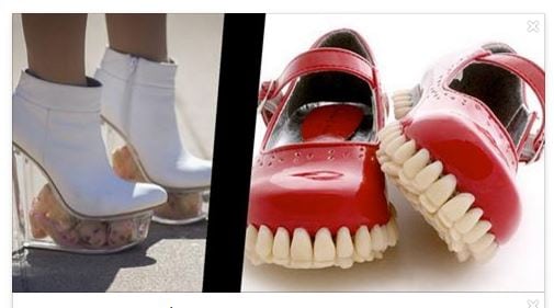 Infine queste scarpe orripilanti che riproducono l’interno della bocca, con denti e gengive. L’impressione iniziale non è per niente positiva, anche perché, a dire il vero, i denti hanno un aspetto molto simile a quello reale.