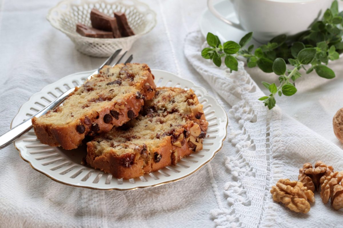 Umido, soffice, iper-goloso, se aggiungiamo, poi, che la sua superficie è tempestata da una pioggia di noci tritate, ci sembrerà di pregustare la sua crosticina che scricchiola tra i denti.