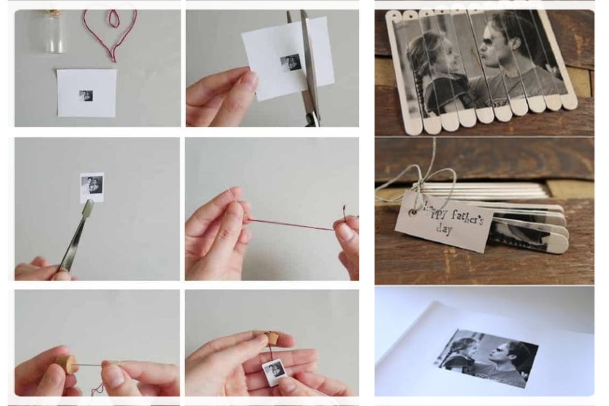 Questa idea è davvero semplice da realizzare e l’effetto sarà fantastico!  Unite fra di loro delle stecche di legno ed incollate su di esse lo scatto che avete scelto. Una volta asciutto, tagliate la foto con un taglierino.