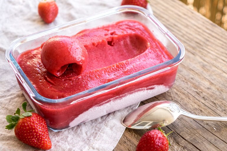 Solo 3 ingredienti per un gelato da realizzare senza gelatiera, assolutamente privo di grassi e lattosio, ma golosissimo e rinfrescante. Un sorbetto perfetto a fine pasto, ricco di frutta e vitamine, da preparare con le fragole che questa primavera ci regala in abbondanza, per portare una ventata di allegria nelle nostre case, quelle in cui costrette, … Leggi tutto