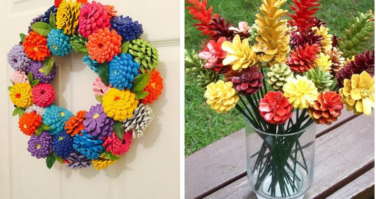 Riciclo pigne: 21 idee strepitose da realizzare con le pigne colorate
