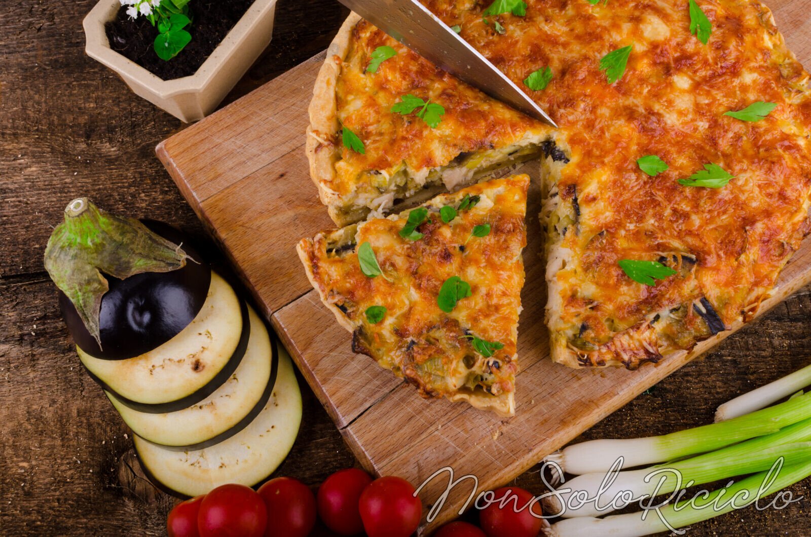 Torta rustica con melanzane e prosciutto cotto