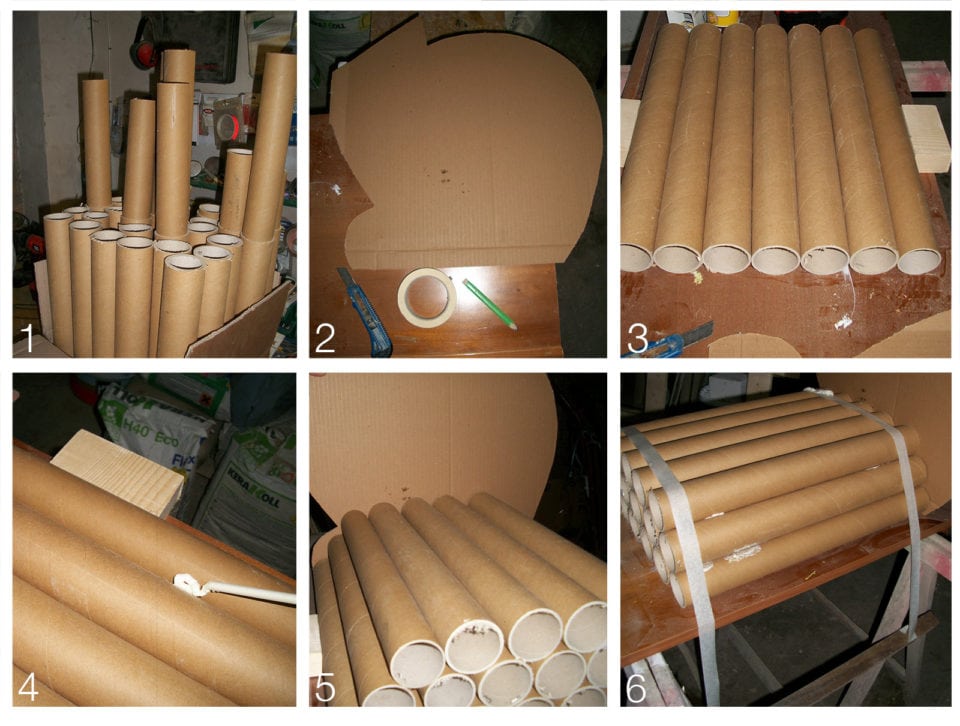 Al posto del classico divano potete costruire questa comoda panca da mettere nel vostro salotto. E’ stata realizzata solamente con dei tubi di cartone piuttosto spessi. Ottima idea da realizzare anche con tubi in PVC.