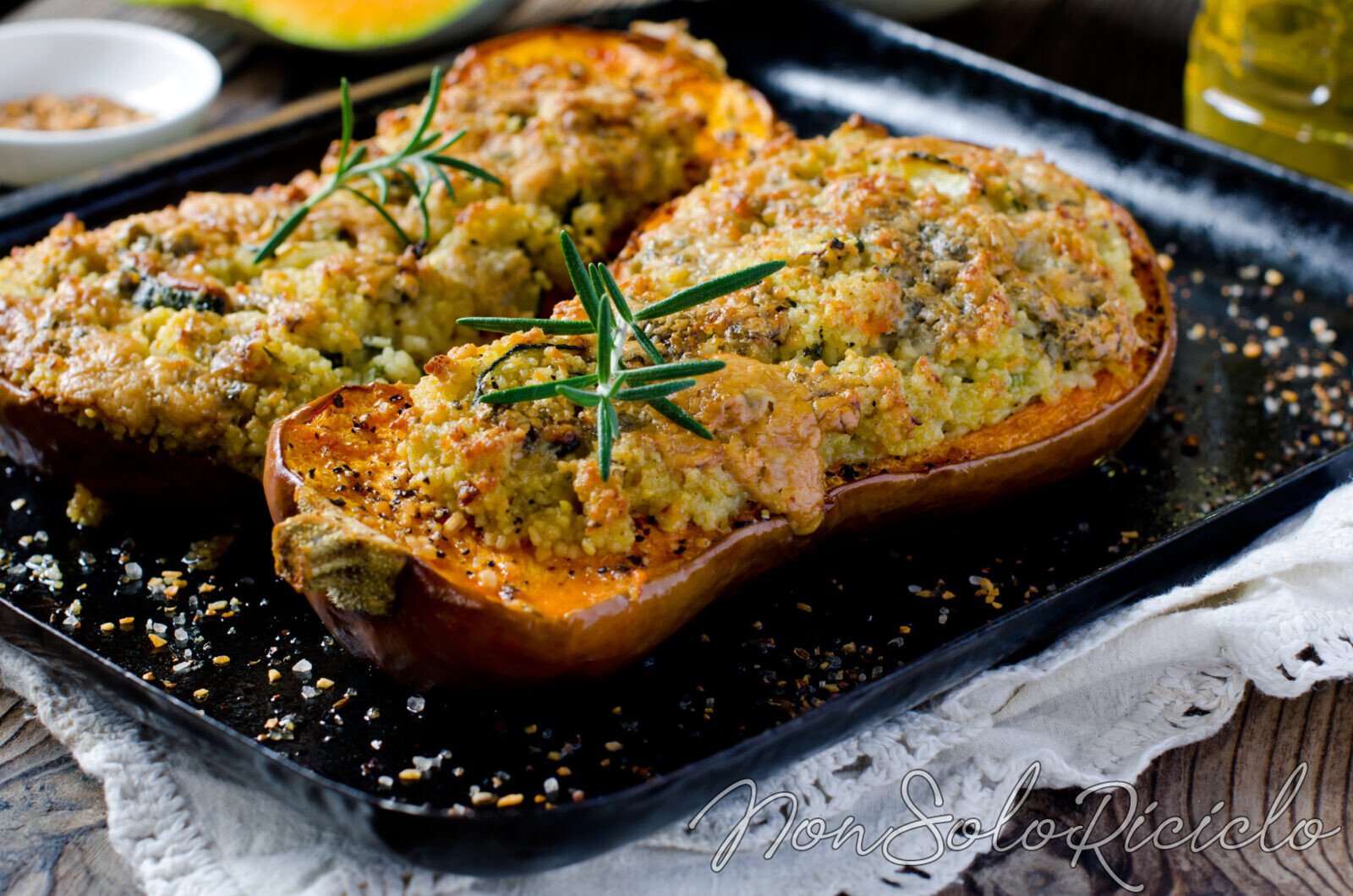 - Qualche rametto di rosmarino per decorare e cuocere la zucca.